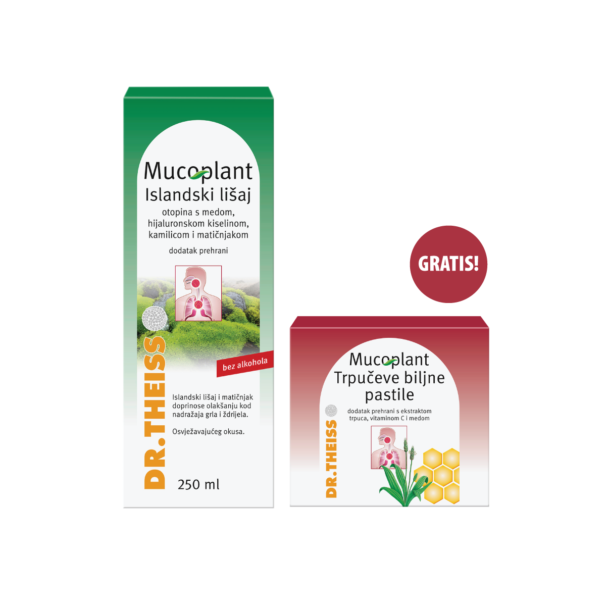 MUCOPLANT ISLANDSKI LIŠAJ OTOPINA: 6-11 godina: 1-2 puta dnevno 5 ml 12-17 godina: 2 puta dnevno 7,5 ml Iznad 18 godina: 2 puta dnevno 10 ml MUCOPLANT TRPUČEVE BILJNE PASTILE: Tijekom dana otopiti u ustima svaka 2-3 sata po jednu pastilu. Dnevno se preporučuje najviše 6 pastila.