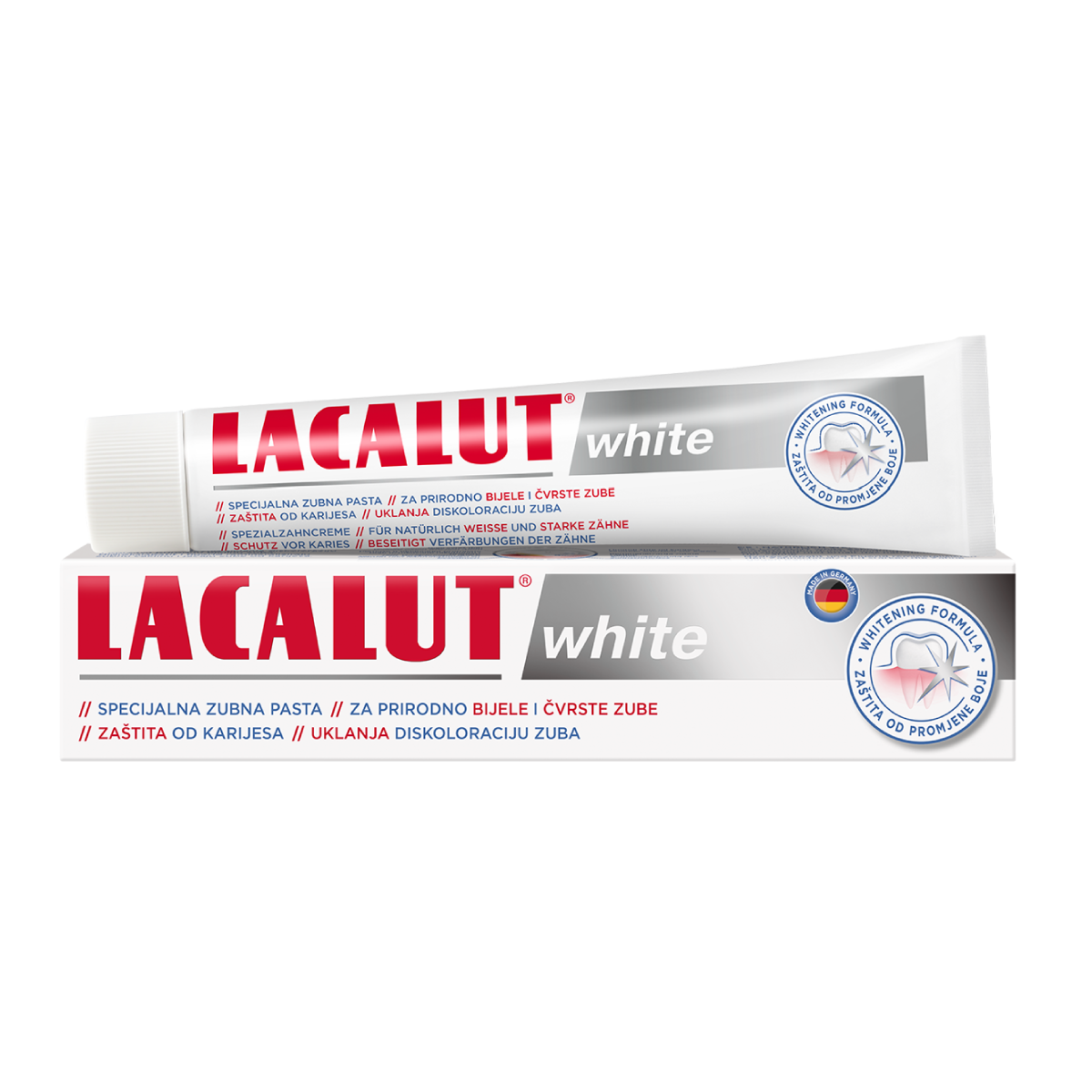 Ujutro i navečer operite zube s LACALUT white pastom u količini zrna graška. Samo za odrasle.